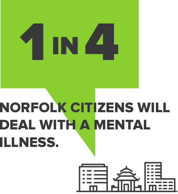 An estimated 60,000 or more Norfolk residents will deal with mental illness in their lives — some of which are confronting it now. This month-long initiative is designed to reduce the stigma around mental health, to encourage those impacted to seek the help they need, and to empower others to engage in conversation with those they suspect may be in crisis.
